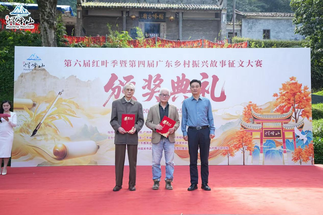 10月25日上午,第六届红叶季暨第四届广东乡村振兴故事征文大赛颁奖活动在广州市帽峰山森林公园举行。本次活动由广东省出版集团指导申捷策略,广东省文化学会、广东省乡村发展协会、帽峰山森林公园、羊城晚报社、广东教育出版社、广东省文艺评论家协会、广东电影家协会、广东视窗、中共韶关市武江区委宣传部、广东雪印集团、广东省文化学会乡村振兴研究院联合主办。