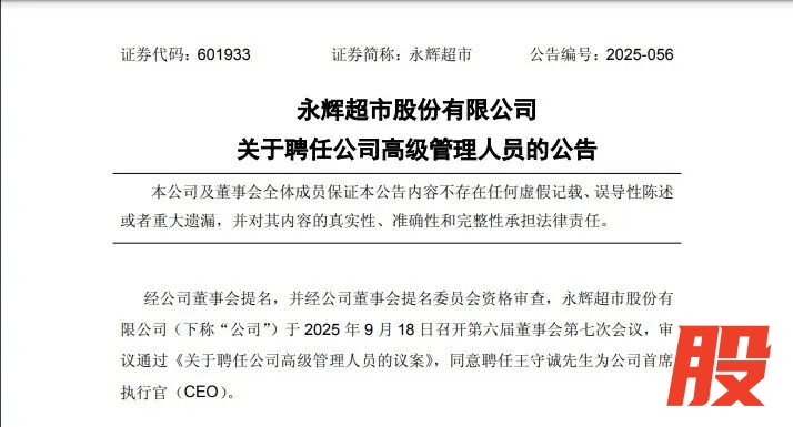 永辉超市9月19日发布公告称,公司第六届董事会第七次会议审议通过相关议案,聘任王守诚为公司首席执行官。