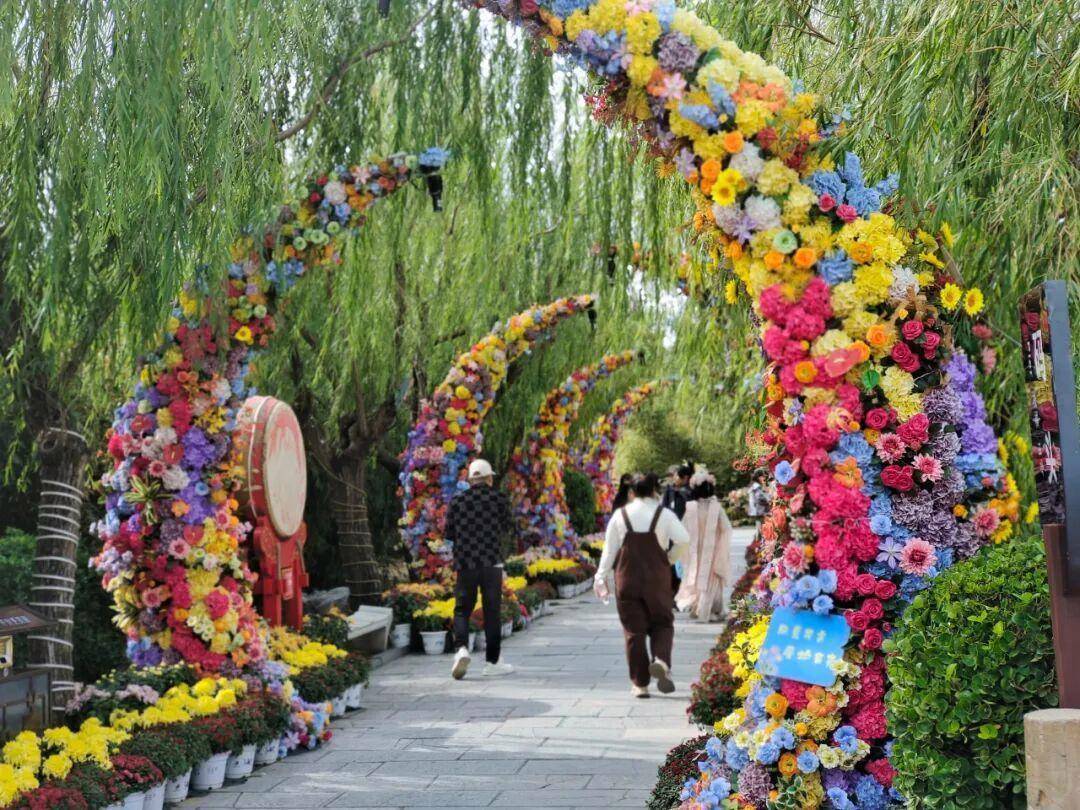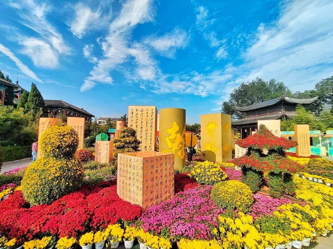 两大国家级展会“花开”开封深秋时节,开封中国翰园碑林内,菊花处处、点景成金,引来市民、游客注目,打卡频频。作为融汇书法艺术精髓与园林景观之美的文化艺术景区,中国翰园碑林在书法和菊花的结合上可谓是下了大功夫。湖畔广场上,古人书法作品展板古雅美观、错落有致,地面上各色菊花竞相绽放。菊花小径,曲径通幽,一步一景,菊花之味,书法之趣,相映成趣。