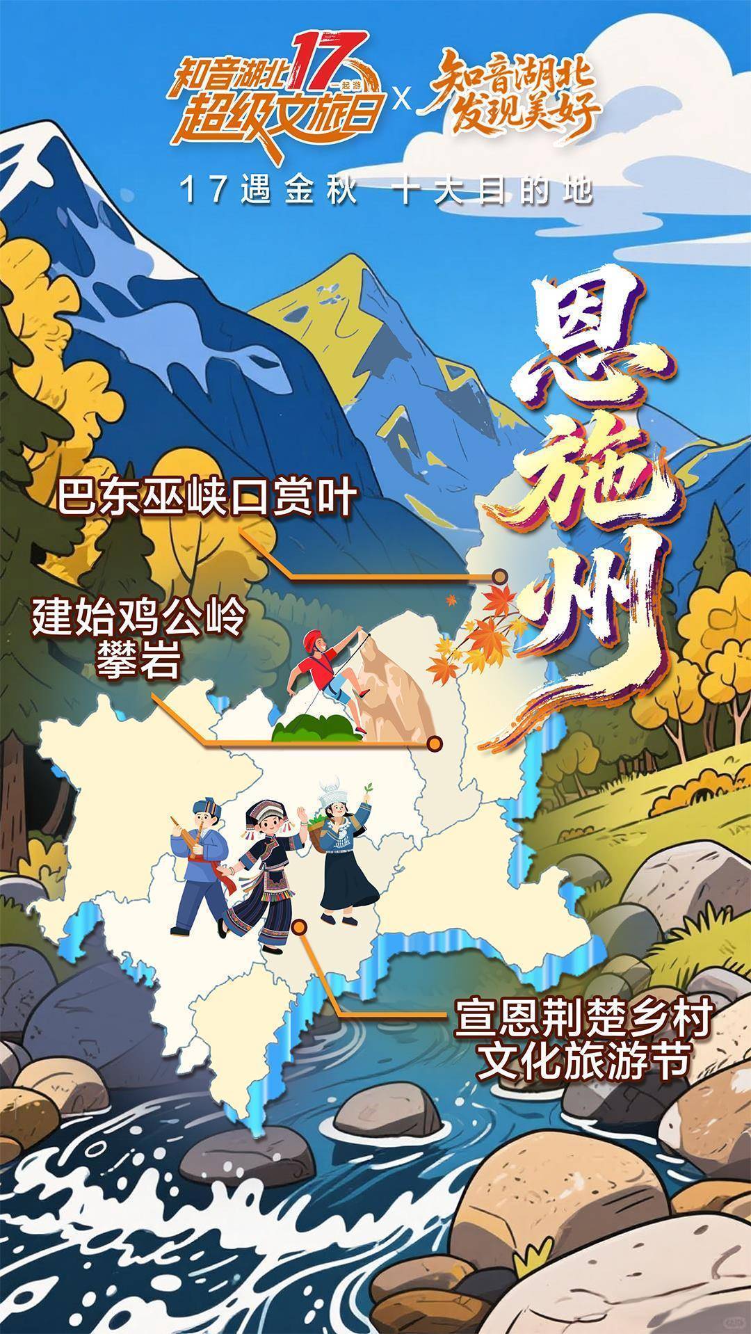 恩施(巴东巫峡口赏叶、建始鸡公岭攀岩、宣恩荆楚乡村文化旅游节)